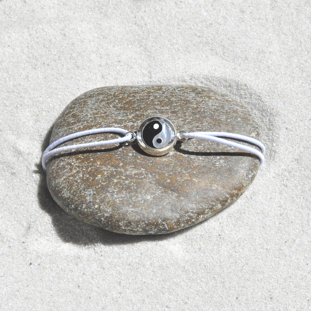 Bracelet Lien Elastique Médaille de Nacre Yin et Yang