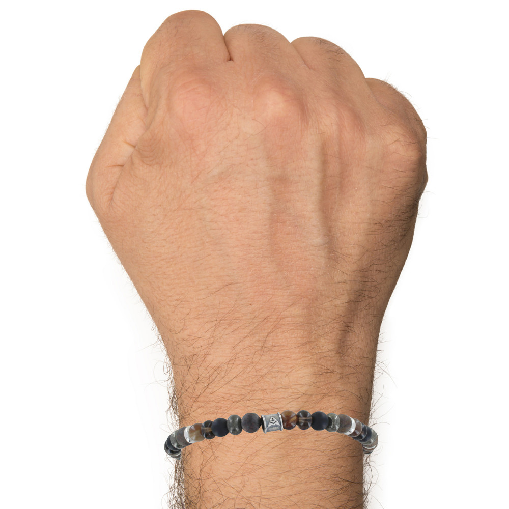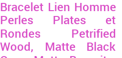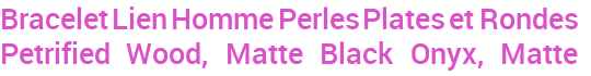Bracelet Lien Homme Perles Plates et Rondes Petrified Wood, Matte Black Onyx, Matte Bronzite, Pyrite, Smoky Quartz