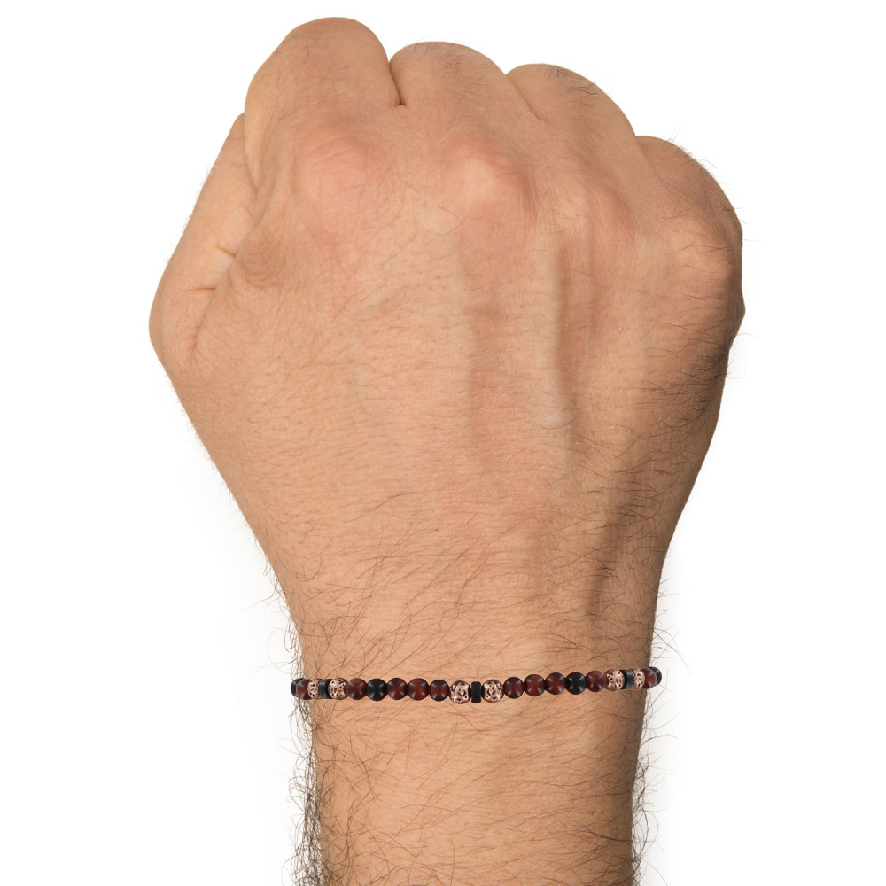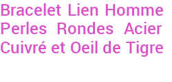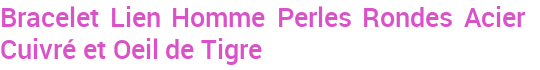 Bracelet Lien Homme Perles Rondes Acier Cuivré et Oeil de Tigre