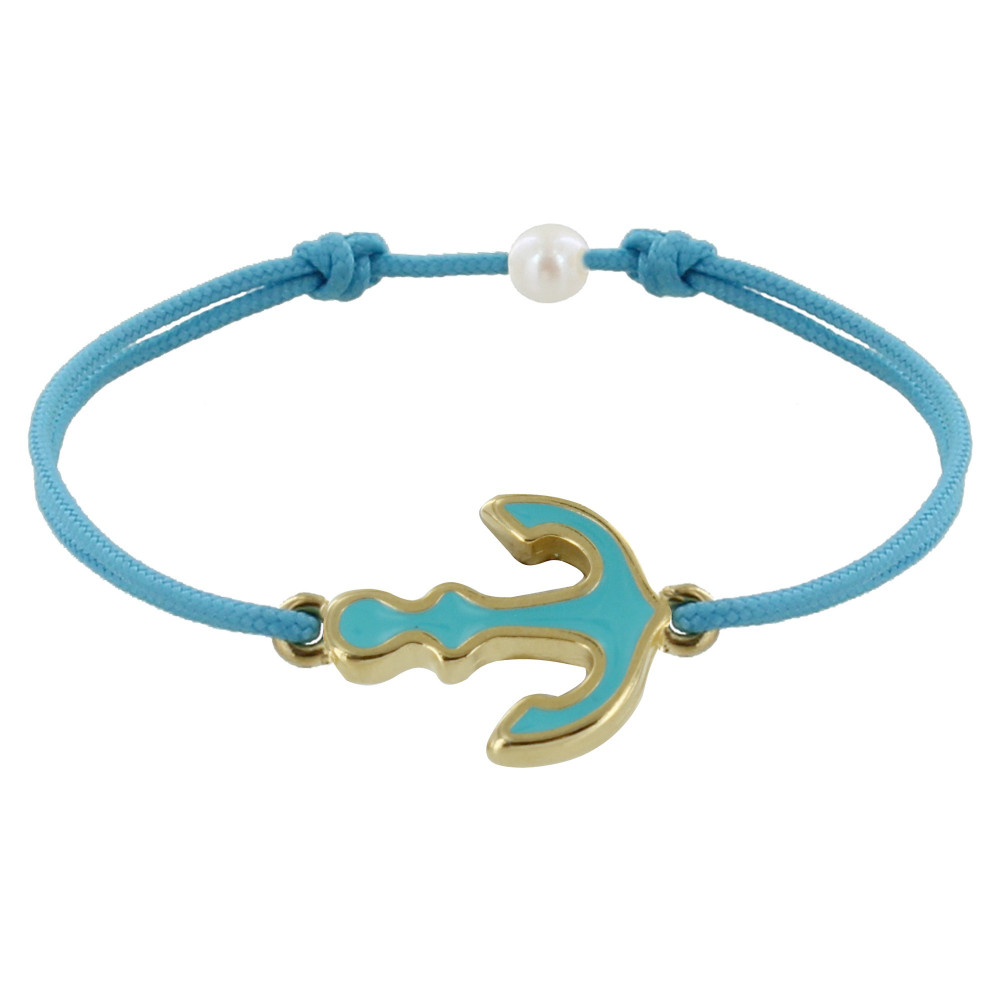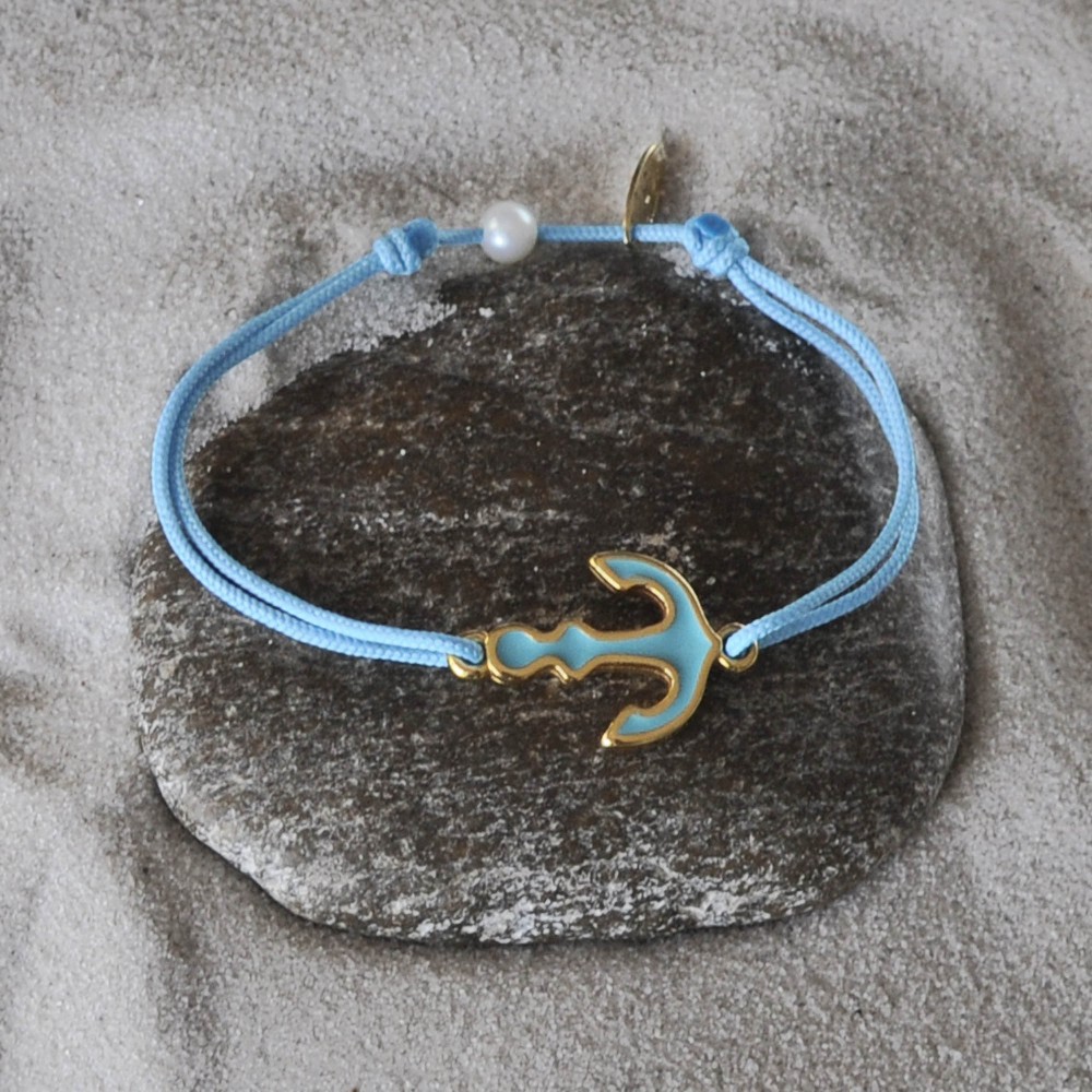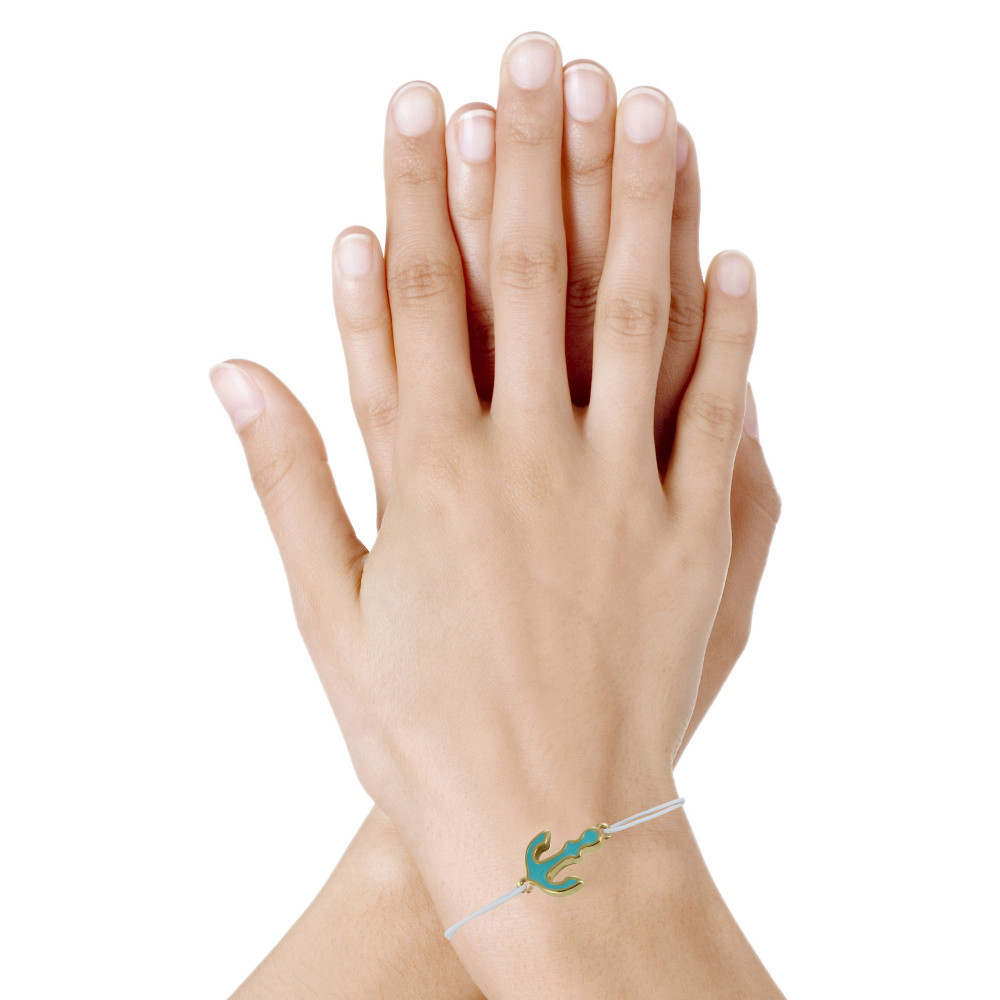 Bracelet Lien Médaille en Laiton Ancre émaillée Turquoise