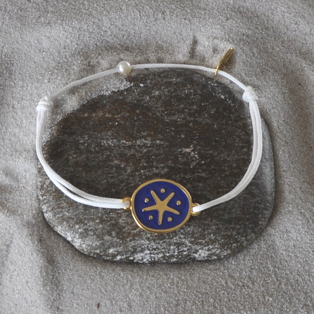 Bracelet Lien Médaille en Laiton Etoile Émaillée Bleue