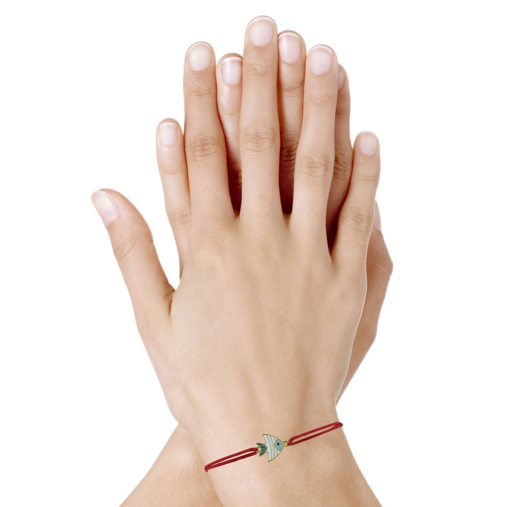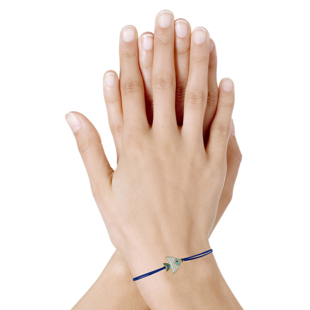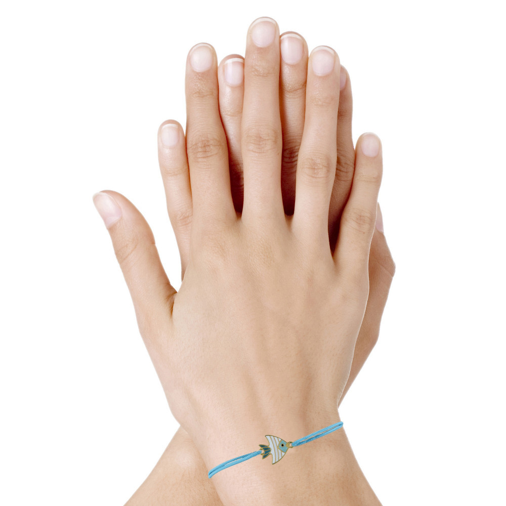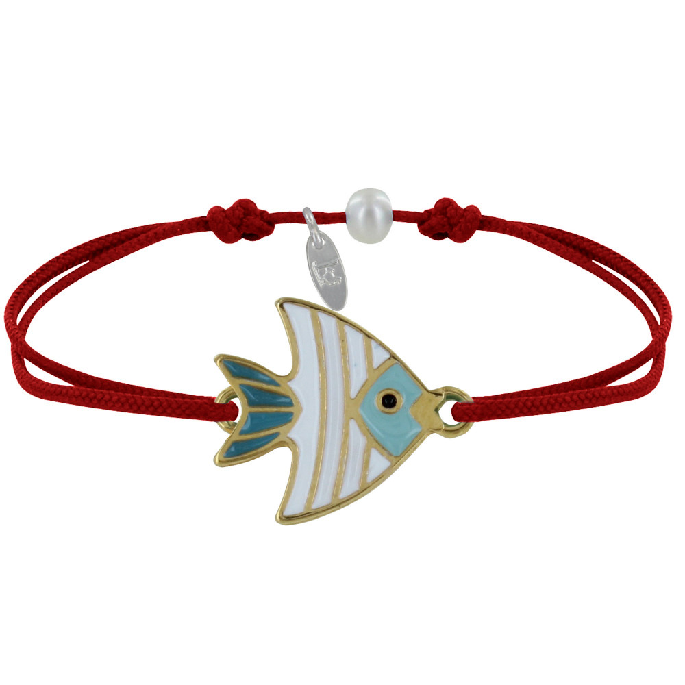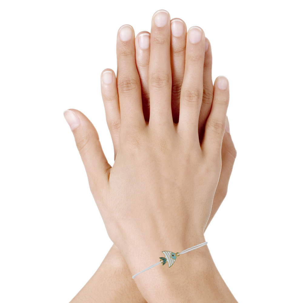 Bracelet Lien Médaille en Laiton Poisson Émaillée Blanche et Turquoise