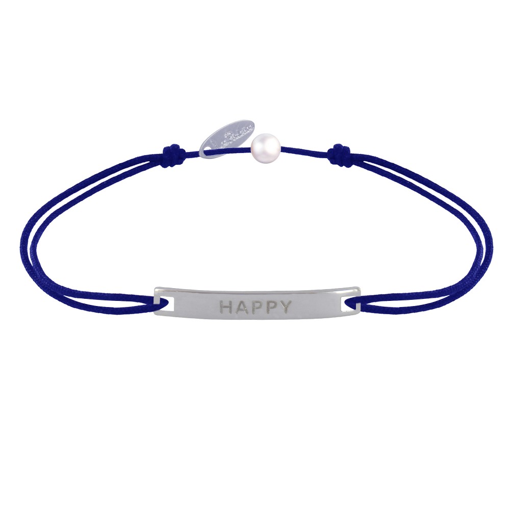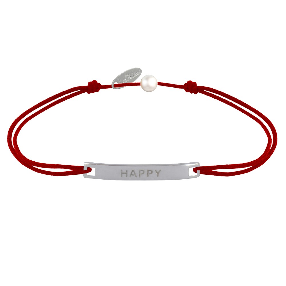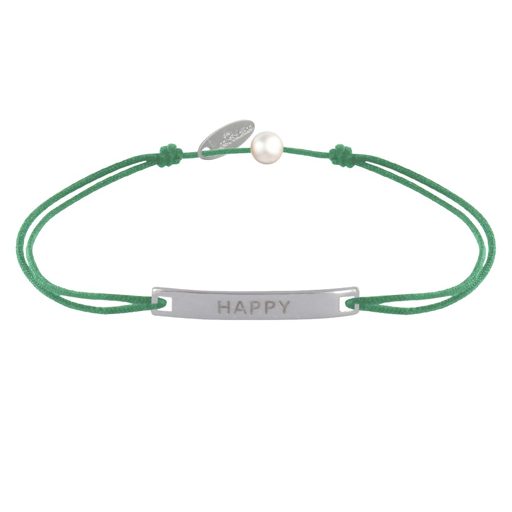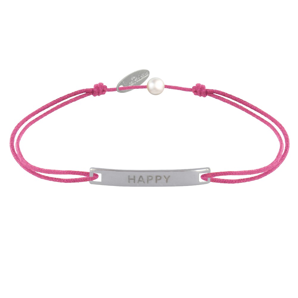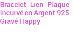 Bracelet Lien Plaque Incurvé en Argent 925 Gravé Happy