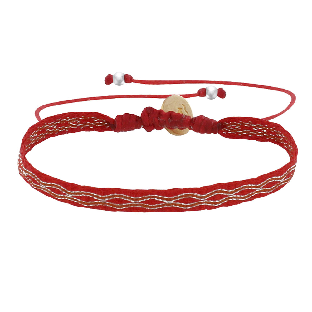 Bracelet Lien Tissé Rouge Losanges Orangés