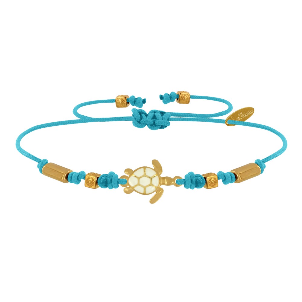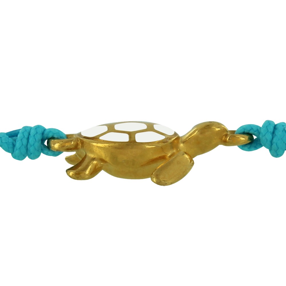 Bracelet Tortue Émaillé Blanche Laiton Doré