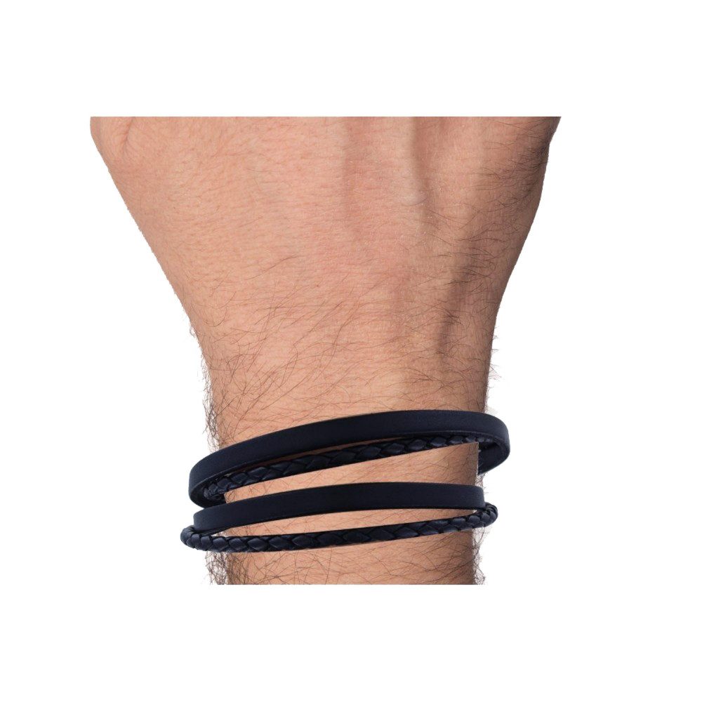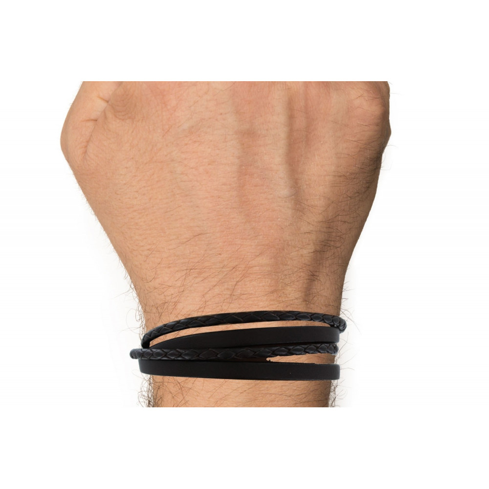 Bracelet Homme Cuir Deux Liens Plat et Tréssé Rond - Classics
