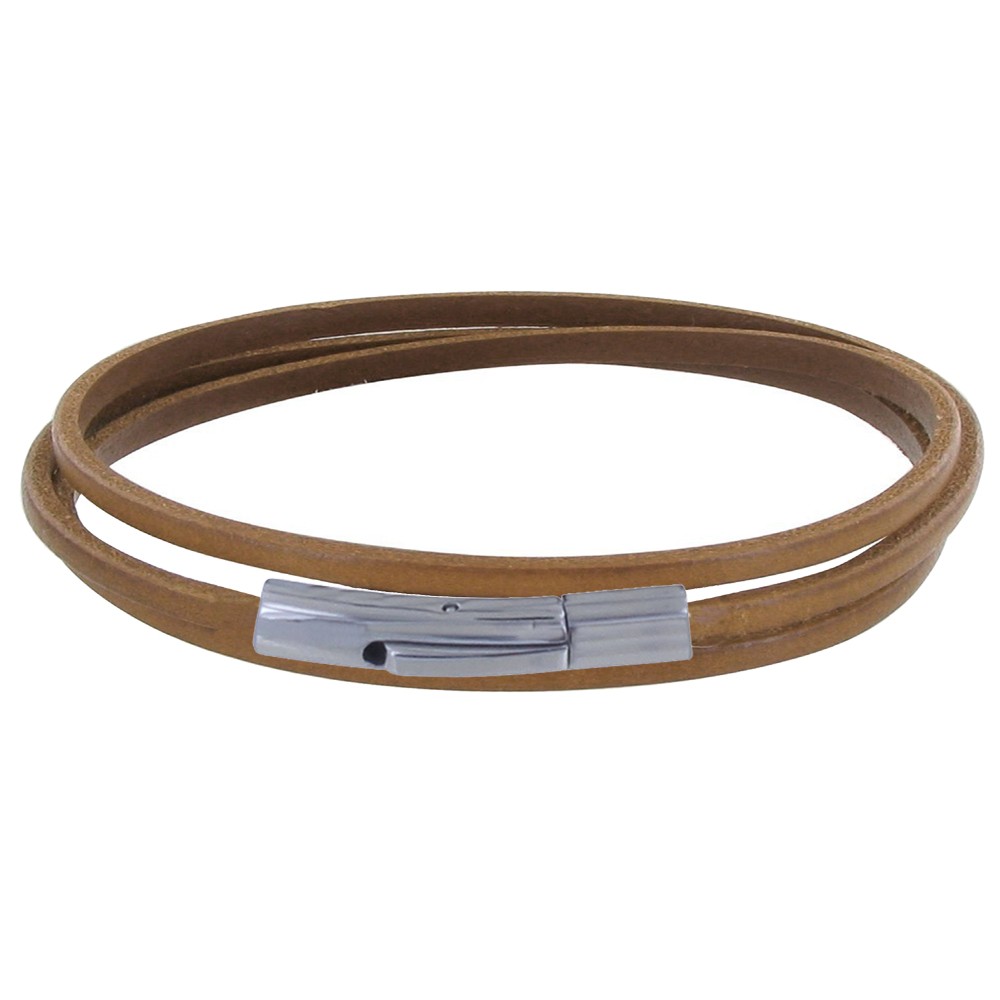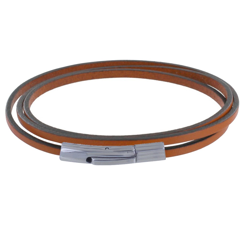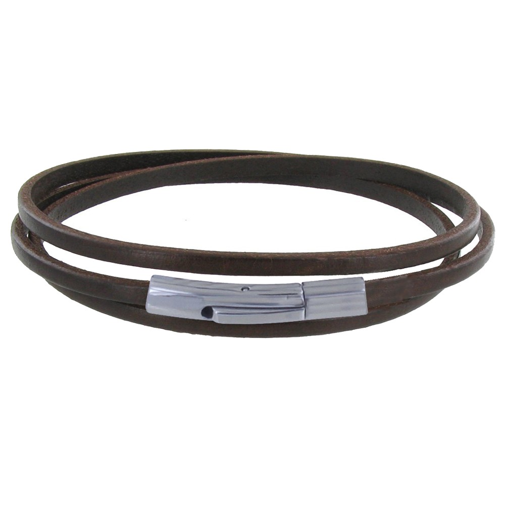 Bracelet Femme Cuir Plat Fermoir Acier Inoxydable - Classics