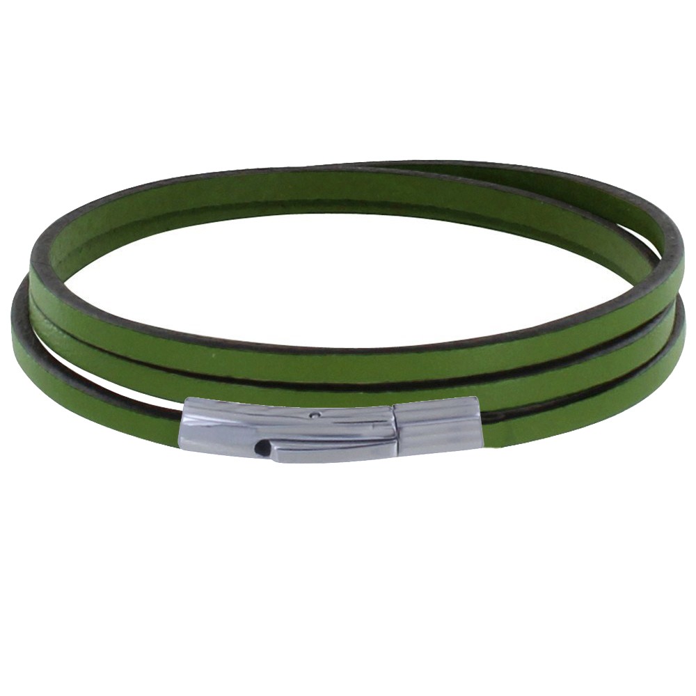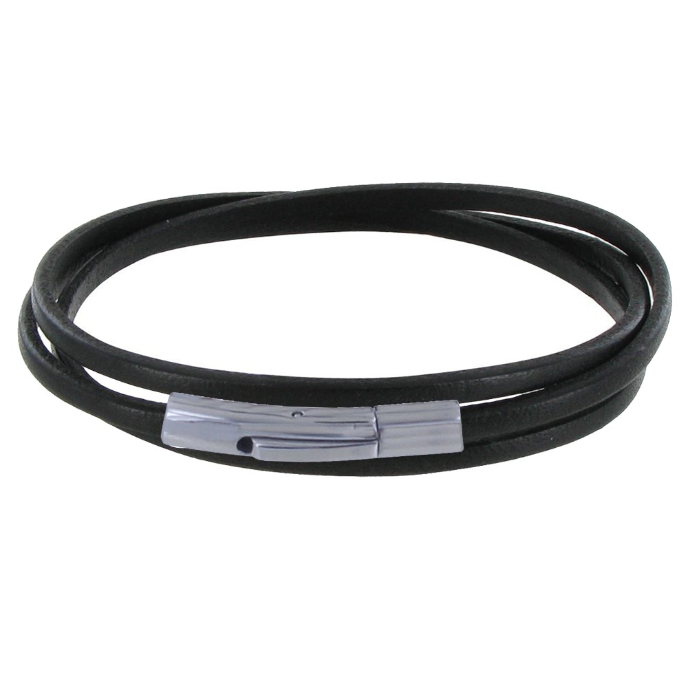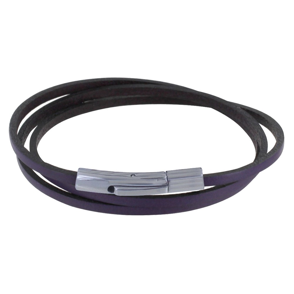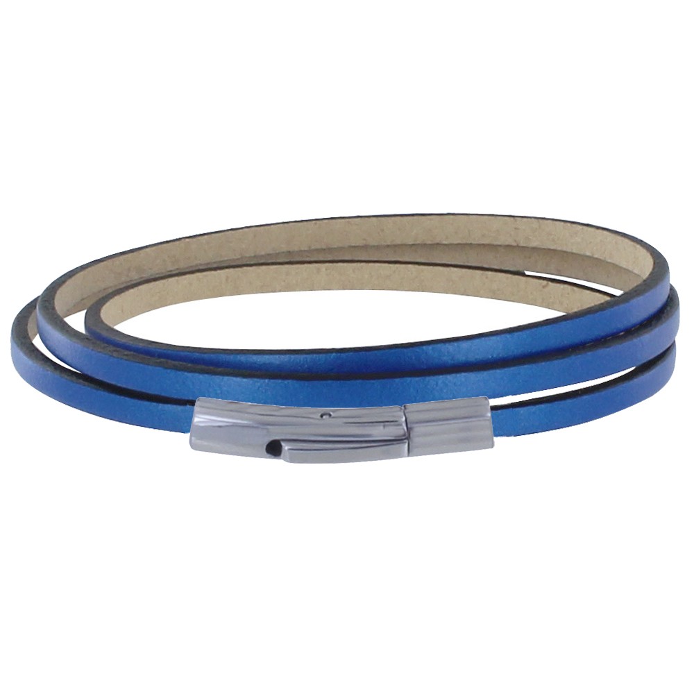Bracelet Femme Cuir Plat Fermoir Acier Inoxydable - Classics