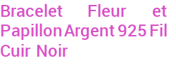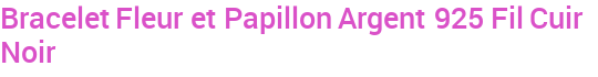 Bracelet Fleur et Papillon Argent 925 Fil Cuir Noir