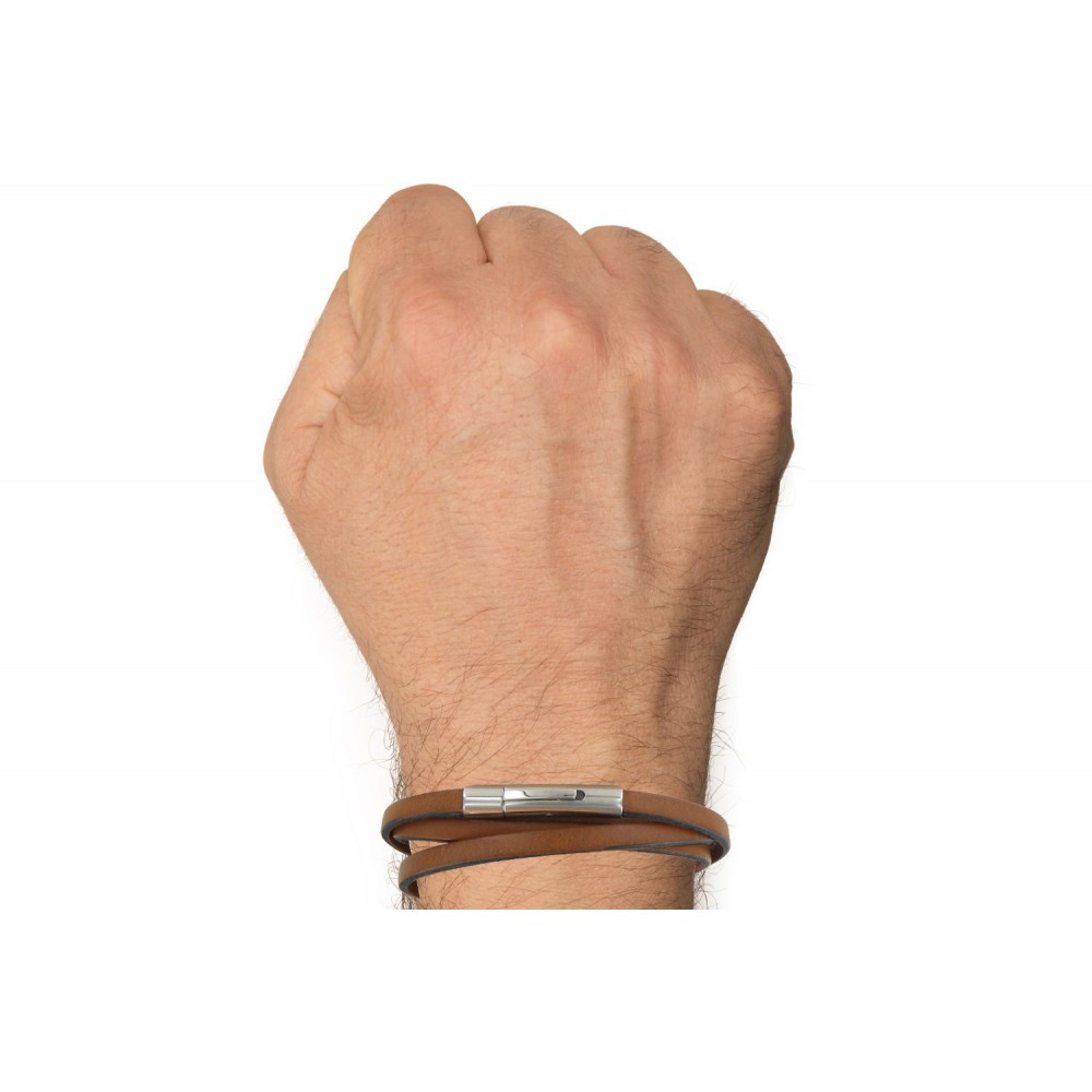 Bracelet Homme Cuir Marron Clair Plat Fermoir Acier Inoxydable