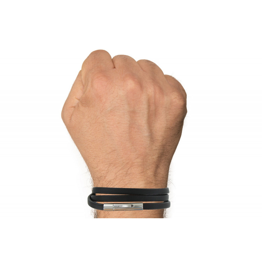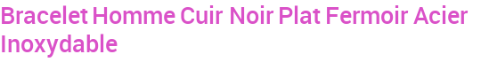 Bracelet Homme Cuir Noir Plat Fermoir Acier Inoxydable