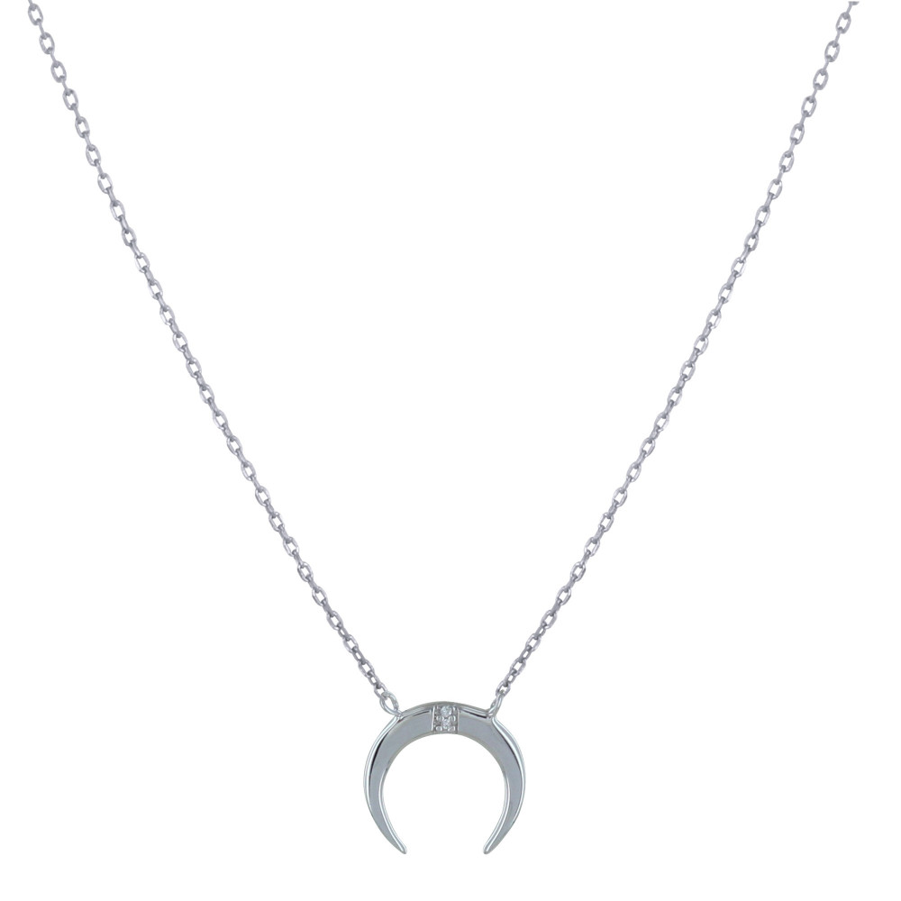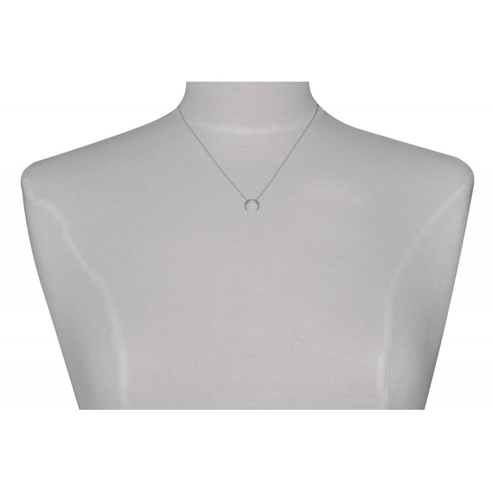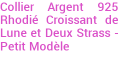 Collier Argent 925 Rhodié Croissant de Lune et Deux Strass - Petit Modèle