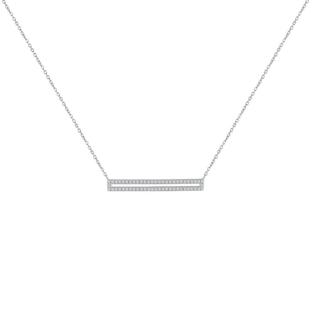 Collier Argent 925 Rhodié Rectangle Ajouré de Strass