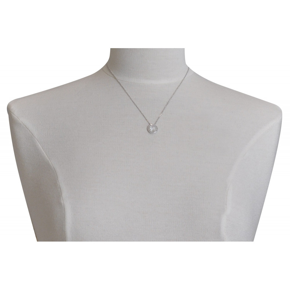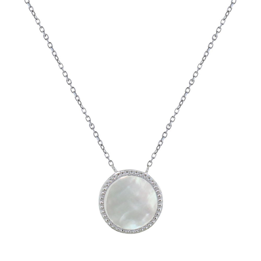 Collier Argent 925 Rhodié Rond de Nacre Ivoire