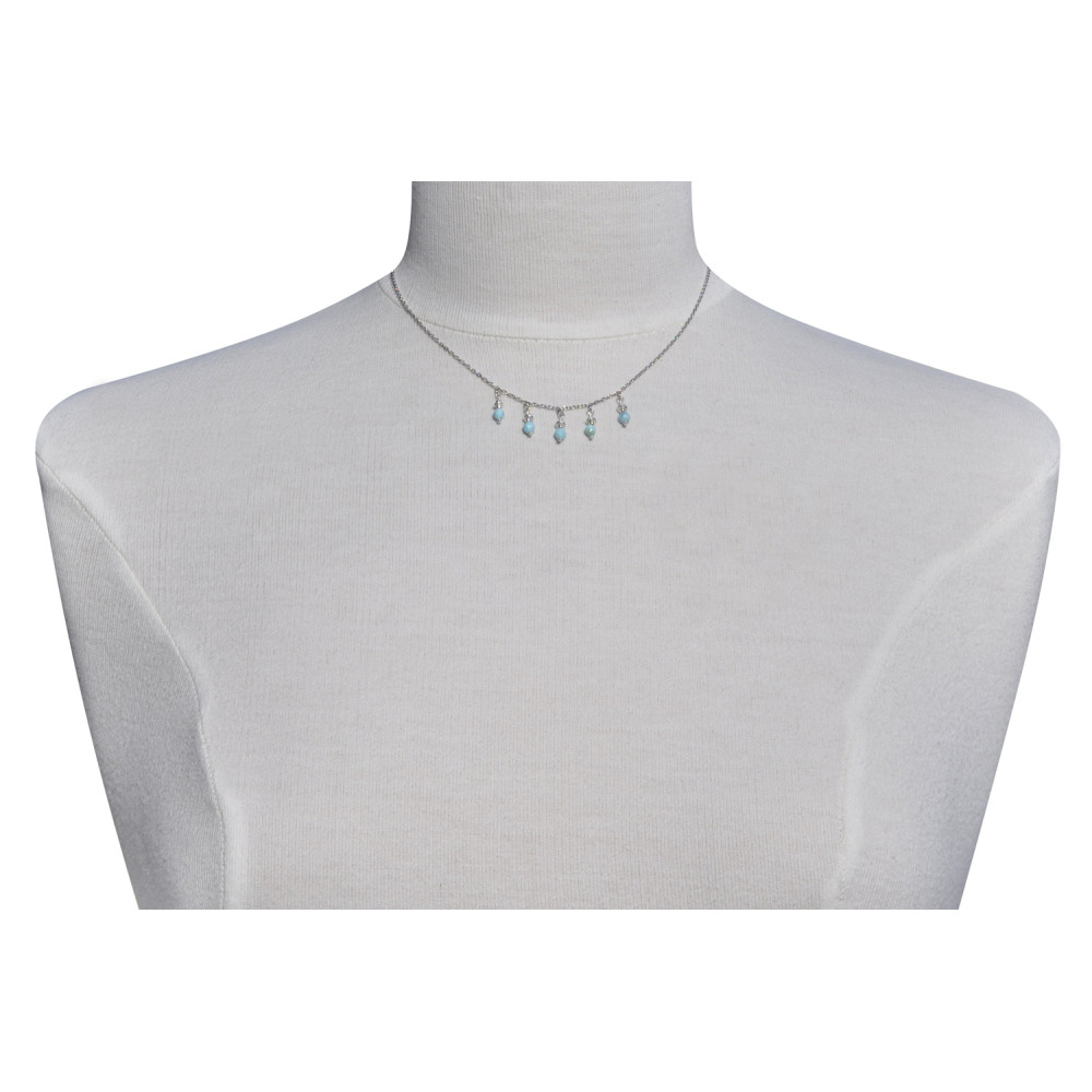 Collier Chaine Argent 925 Breloques Cinq Perles de Larimar Facettées Anneaux et Perles Argent 925