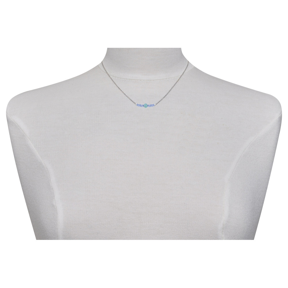 Collier Chaine Argent 925 Rhodié Perles Facettées de Tanzanite et Une Perle de Larimar