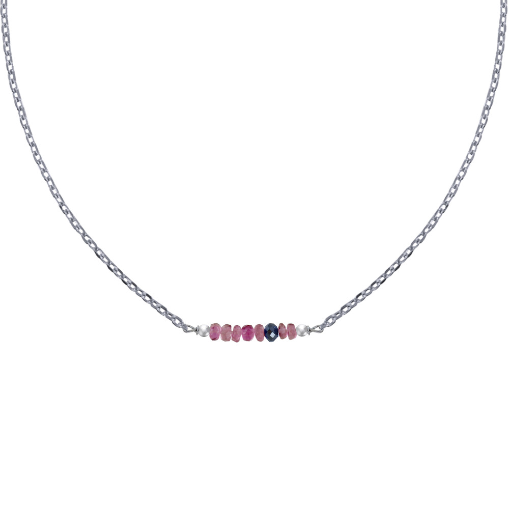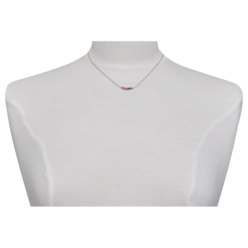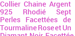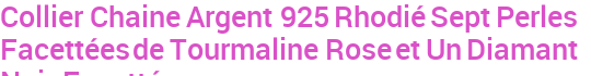 Collier Chaine Argent 925 Rhodié Sept Perles Facettées de Tourmaline Rose et Un Diamant Noir Facettée