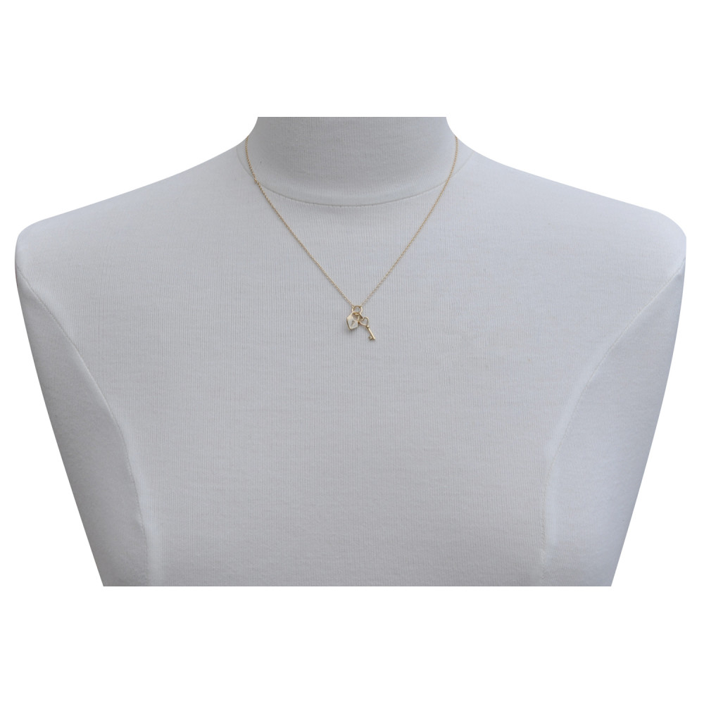 Collier Plaqué Or Breloques Cadenas Coeur et Clé