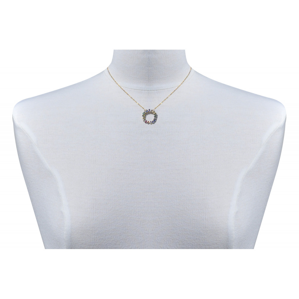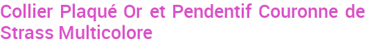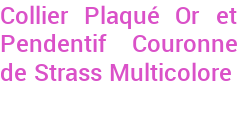 Collier Plaqué Or et Pendentif Couronne de Strass Multicolore