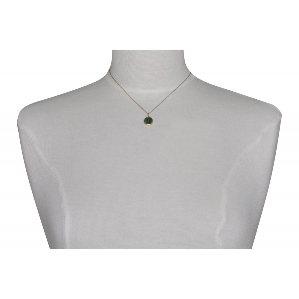 Collier Plaqué Or Médaille Ronde Malachite