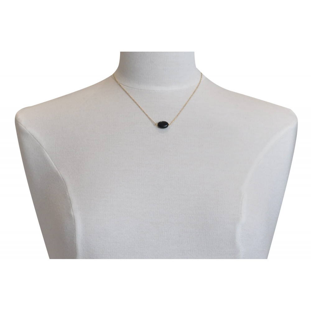 Collier Plaqué Or Pierre Ovale d'Agate Noire