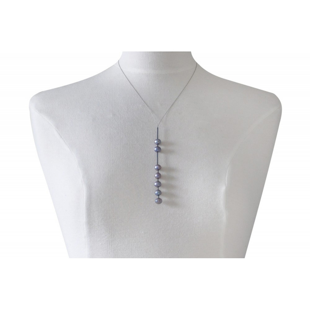 Collier Câble Acier Perles de Culture 2 + 5 Perles 9mm - Classics