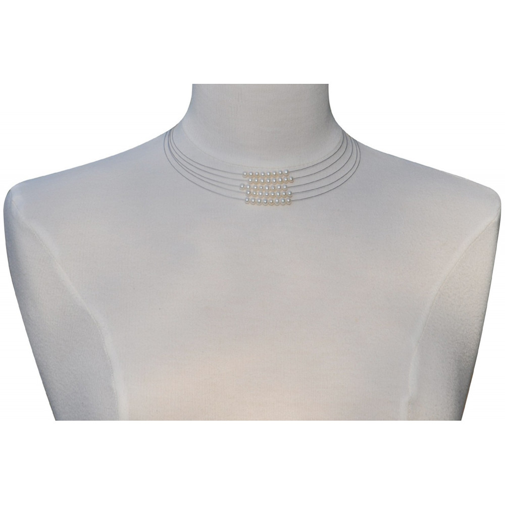 Collier Multi-fils Argent 925 Rhodié et Perles Blanches