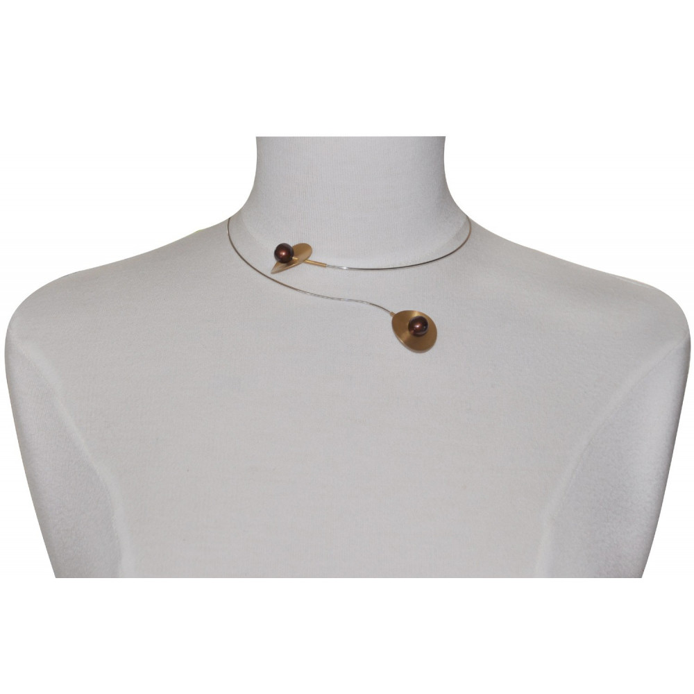 Collier Ras de Cou Argent 925 2 Nénuphars Vermeil Perle Cuivrée
