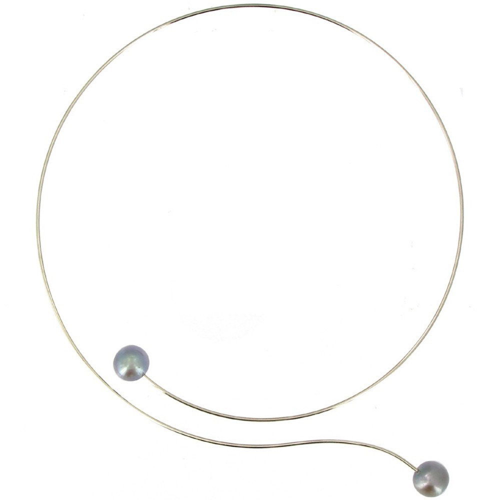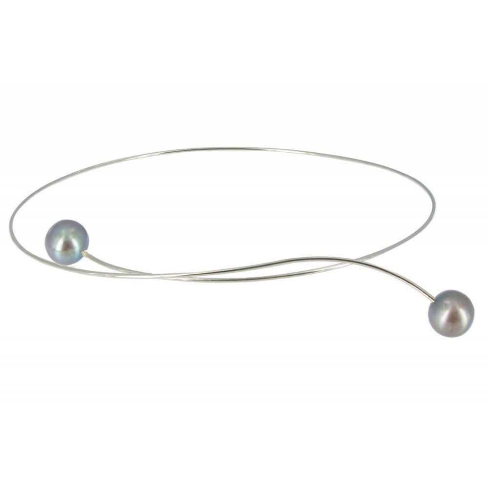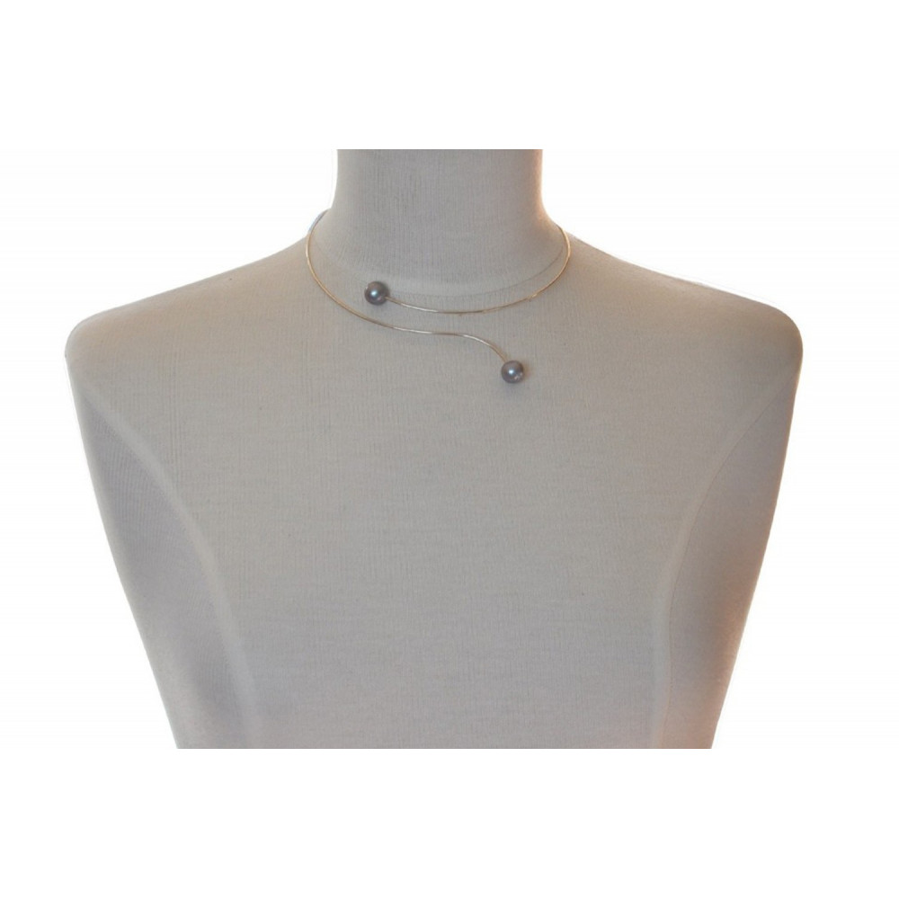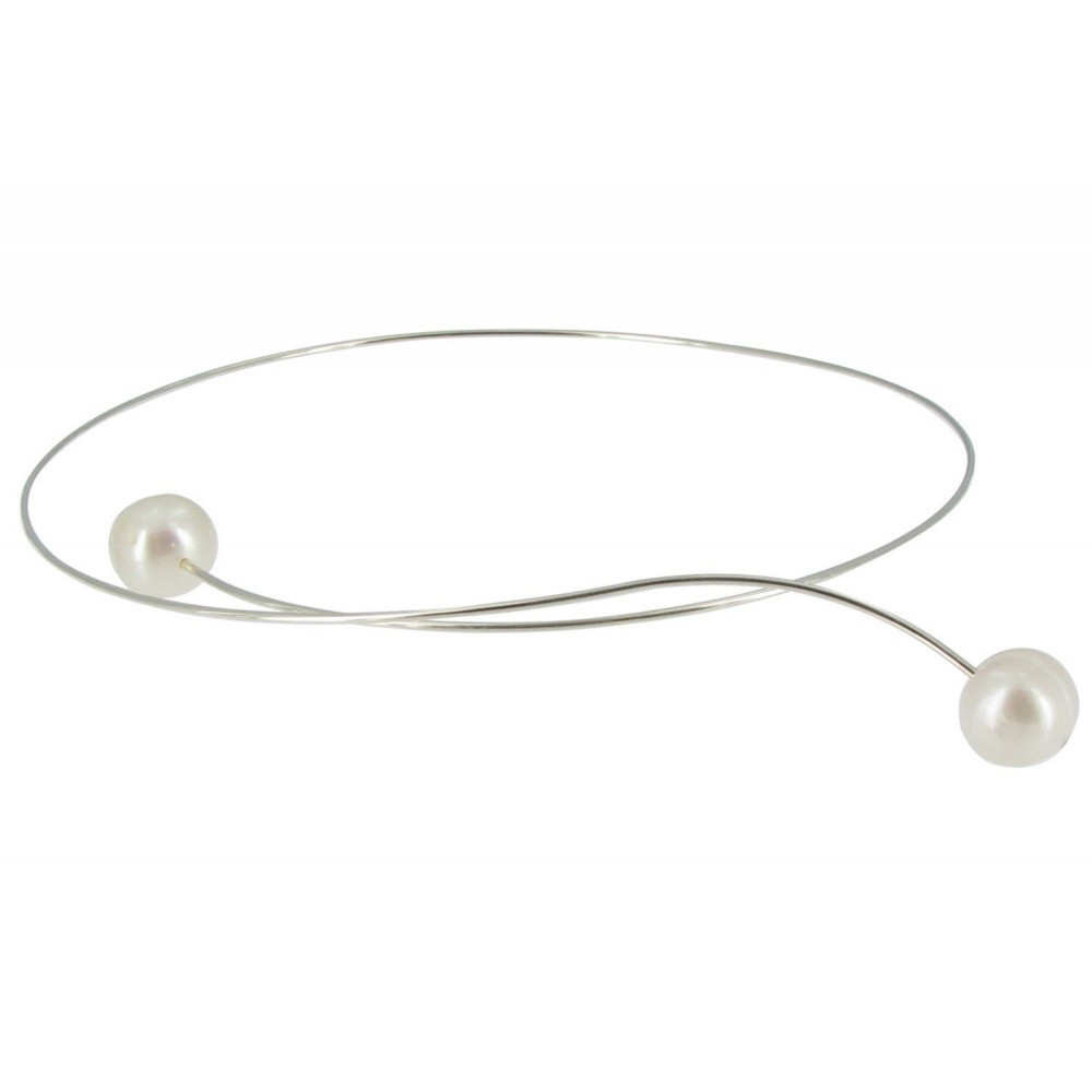 Collier Ras de Cou Argent 925 2 Perles de Culture 11 mm - Classics