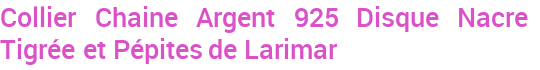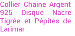 Collier Chaine Argent 925 Disque Nacre Tigrée et Pépites de Larimar