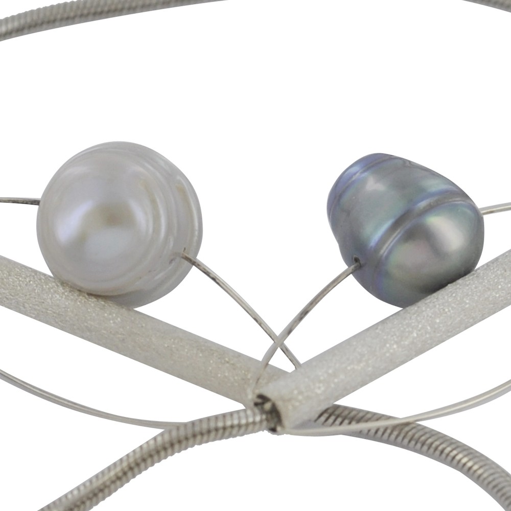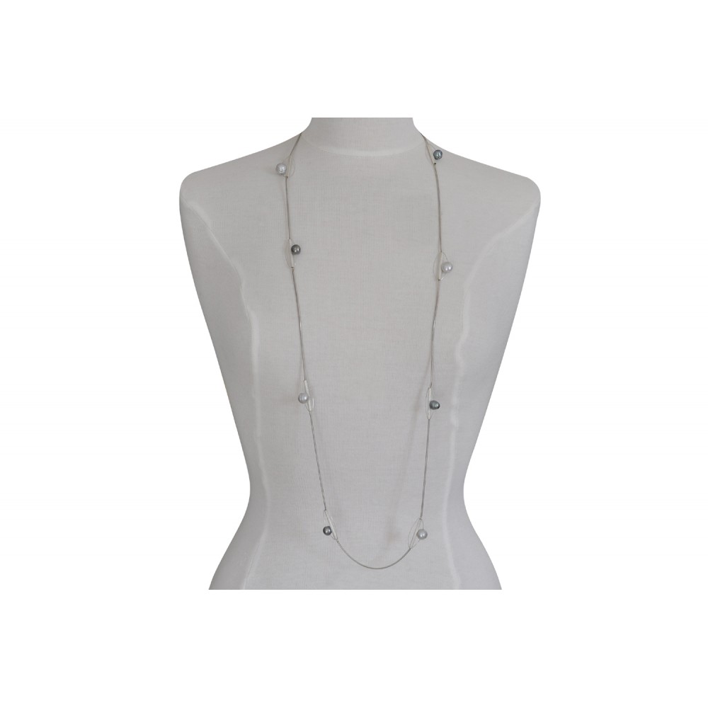 Sautoir Argent 925 et 8 Perles Baroques Gris Foncées et Gris Clair