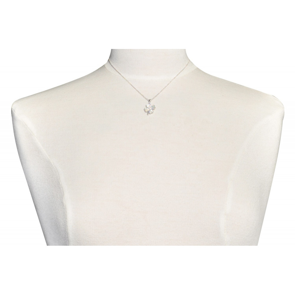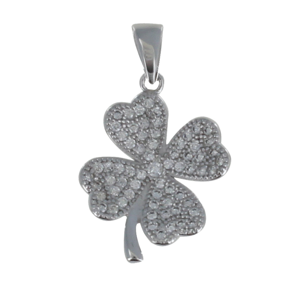 Pendentif Argent 925 Rhodié Trèfle de Strass