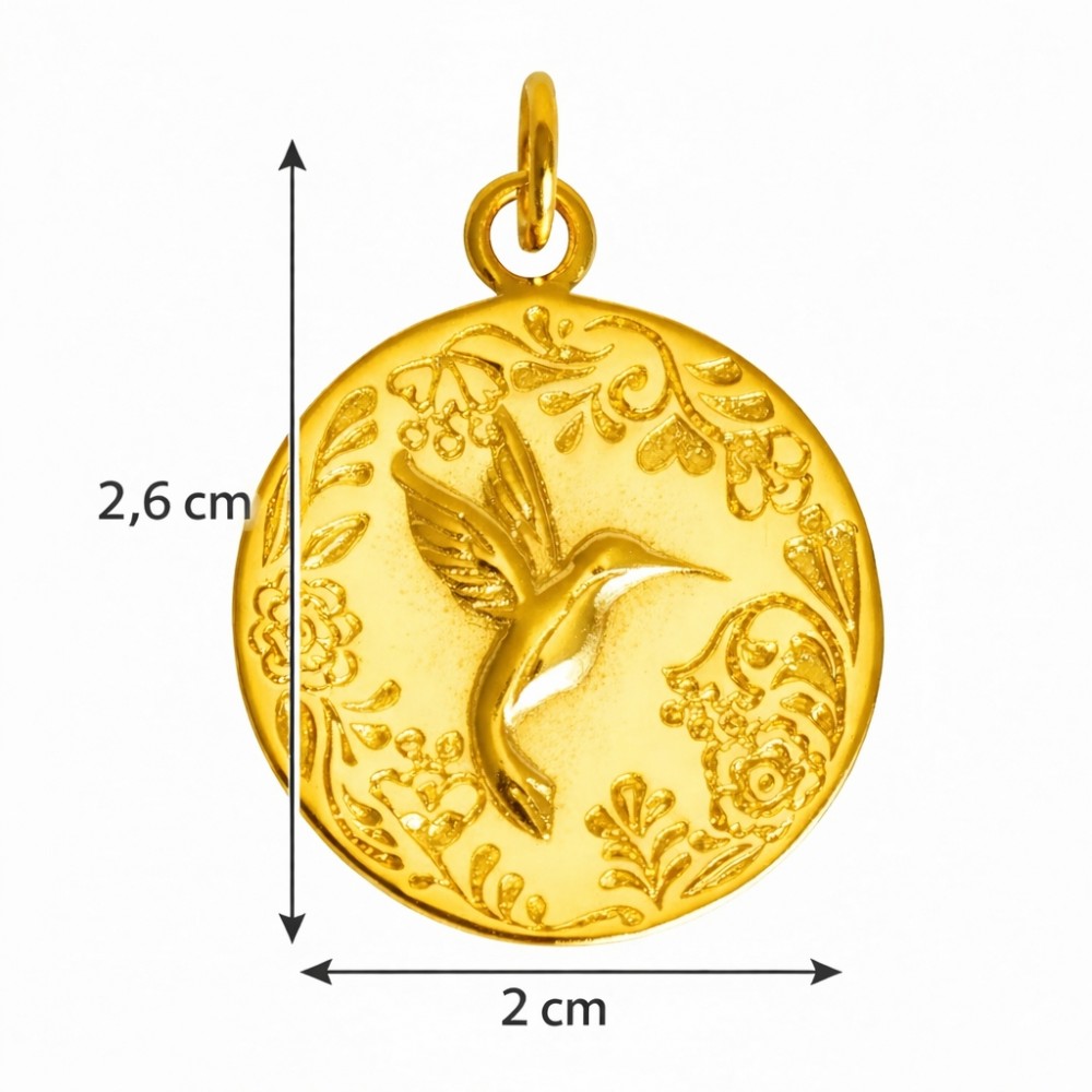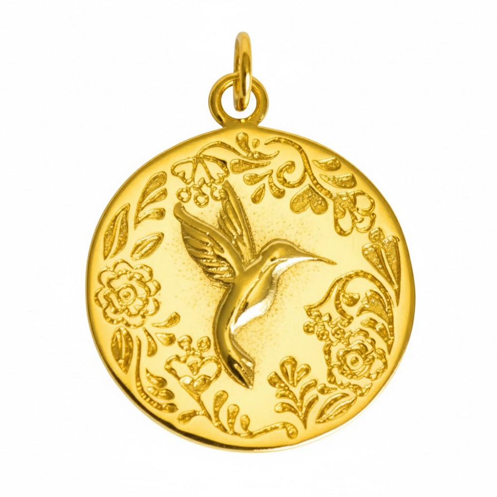 Pendentif Plaqué Or Médaille Ronde Colibri