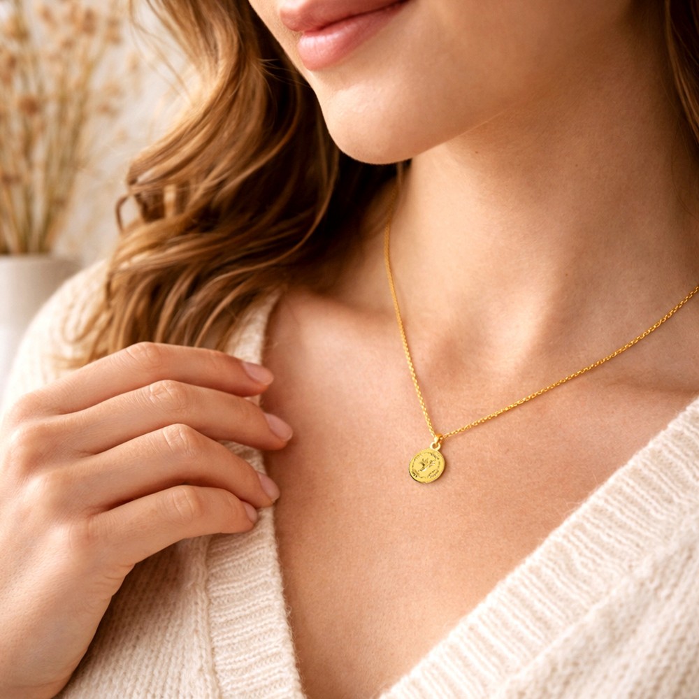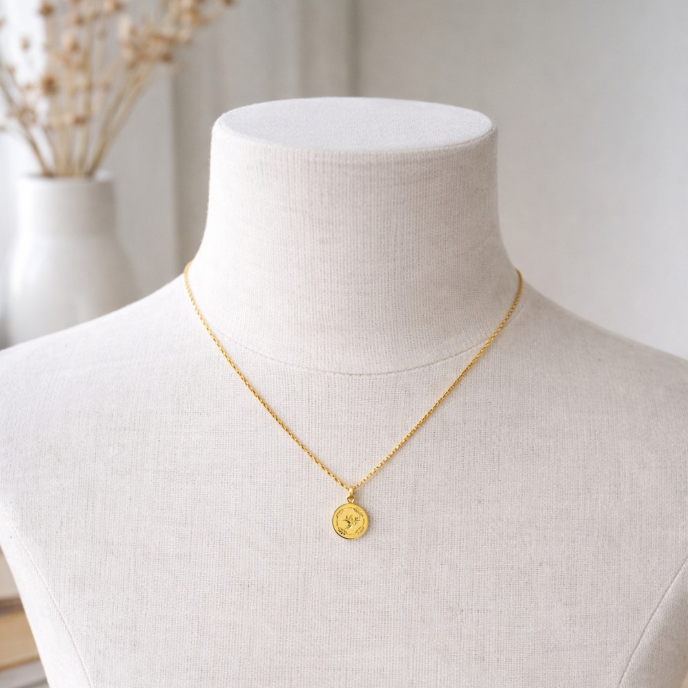 Pendentif Plaqué Or Médaille Ronde Colibri Feuilles