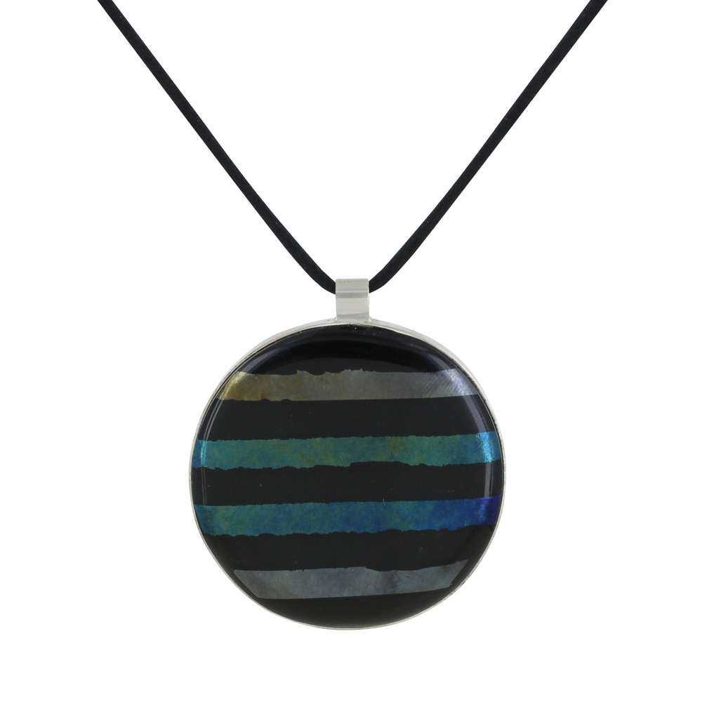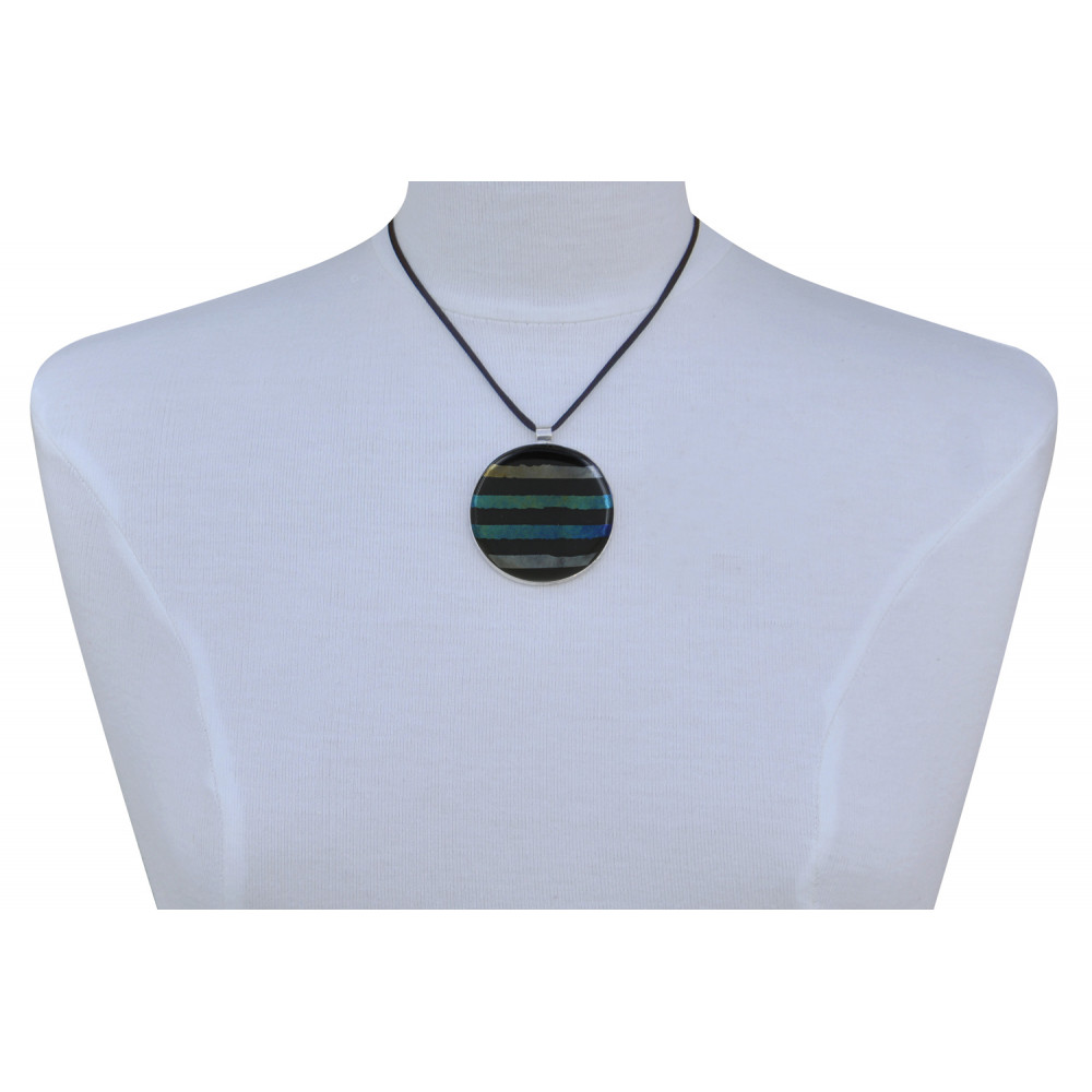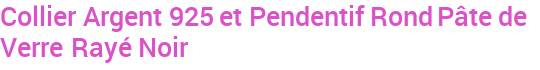 Collier Argent 925 et Pendentif Rond Pâte de Verre Rayé Noir