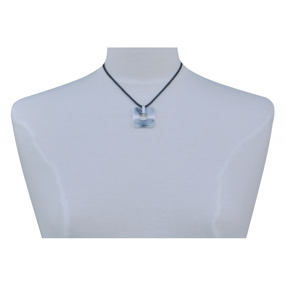 Collier Argent 925 et Petit Pendentif Pâte de Verre Donuts Noir