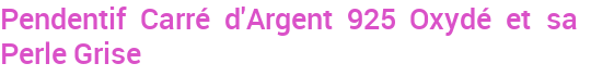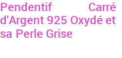Pendentif Carré d'Argent 925 Oxydé et sa Perle Grise
