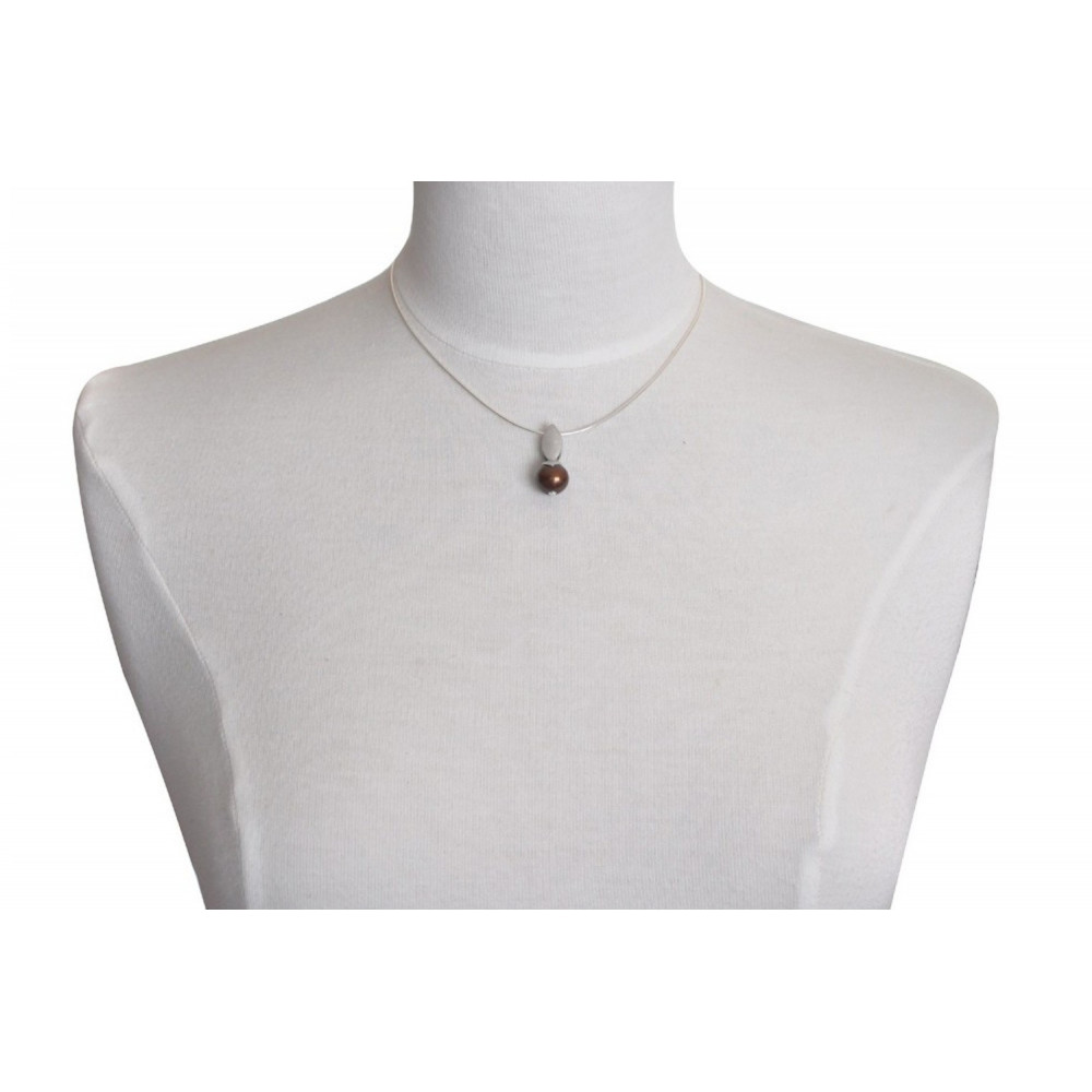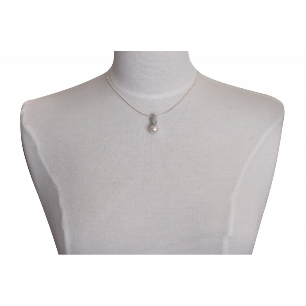 Pendentif Feuille en Argent 925 Rhodié Perle de Culture - Classics